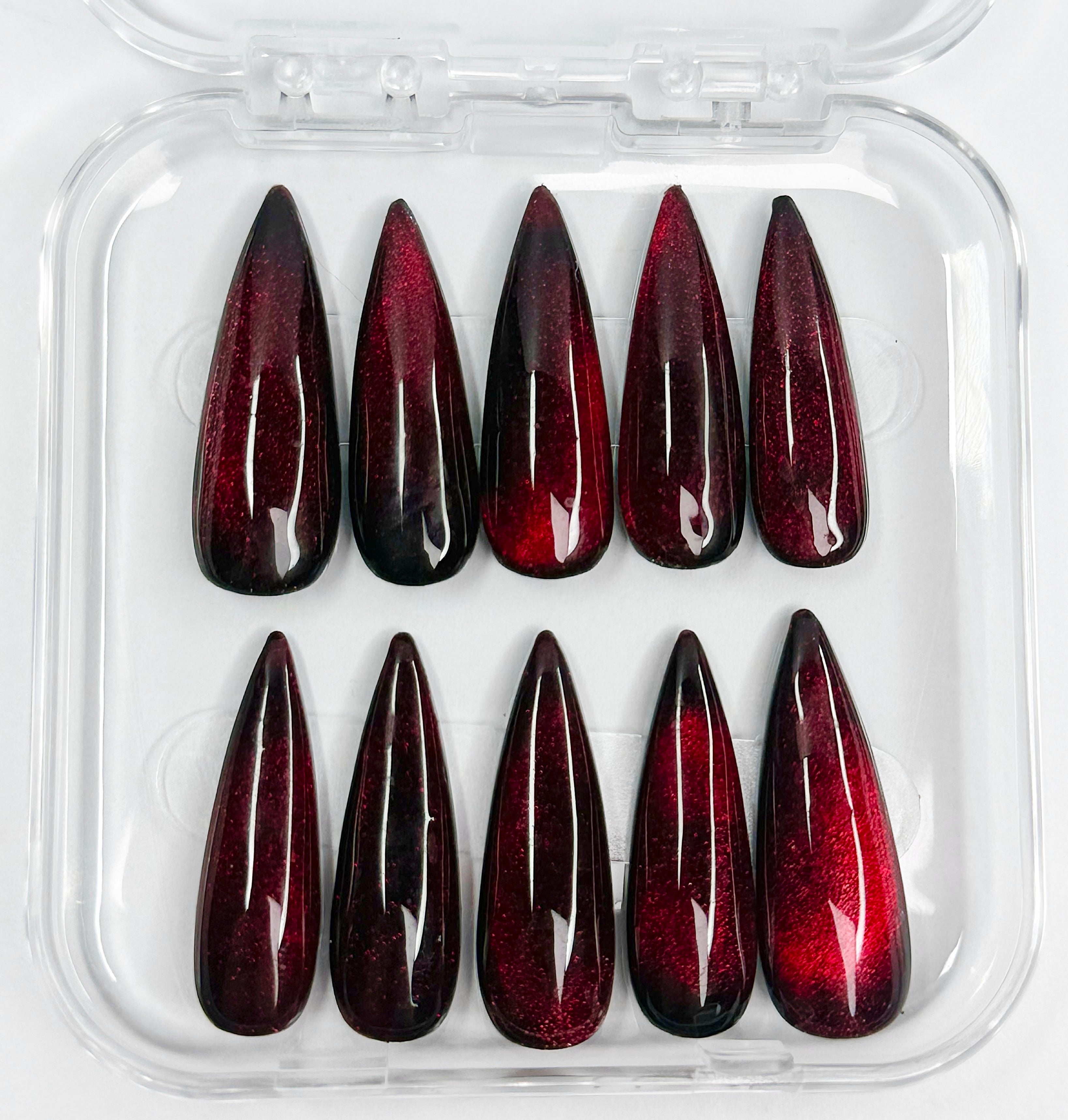 Stiletto shaped sparkly black/ sparkly rose gold budget friendly reusable press-on nails 10pc